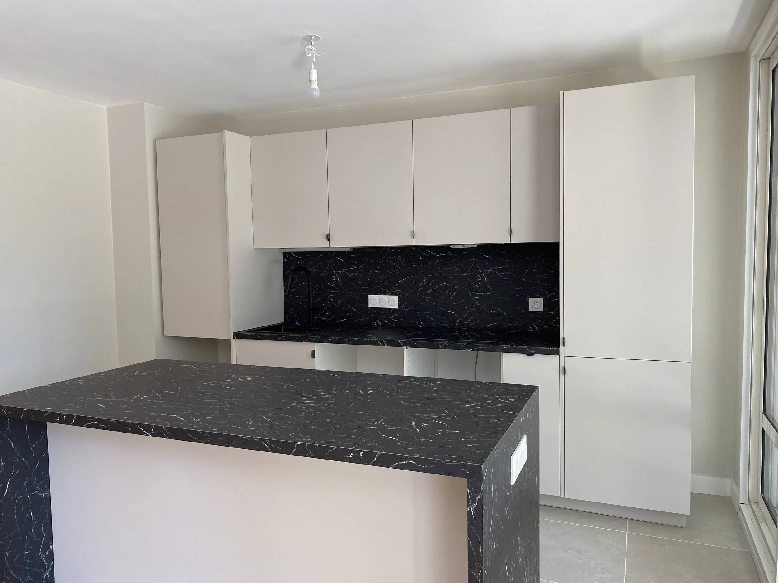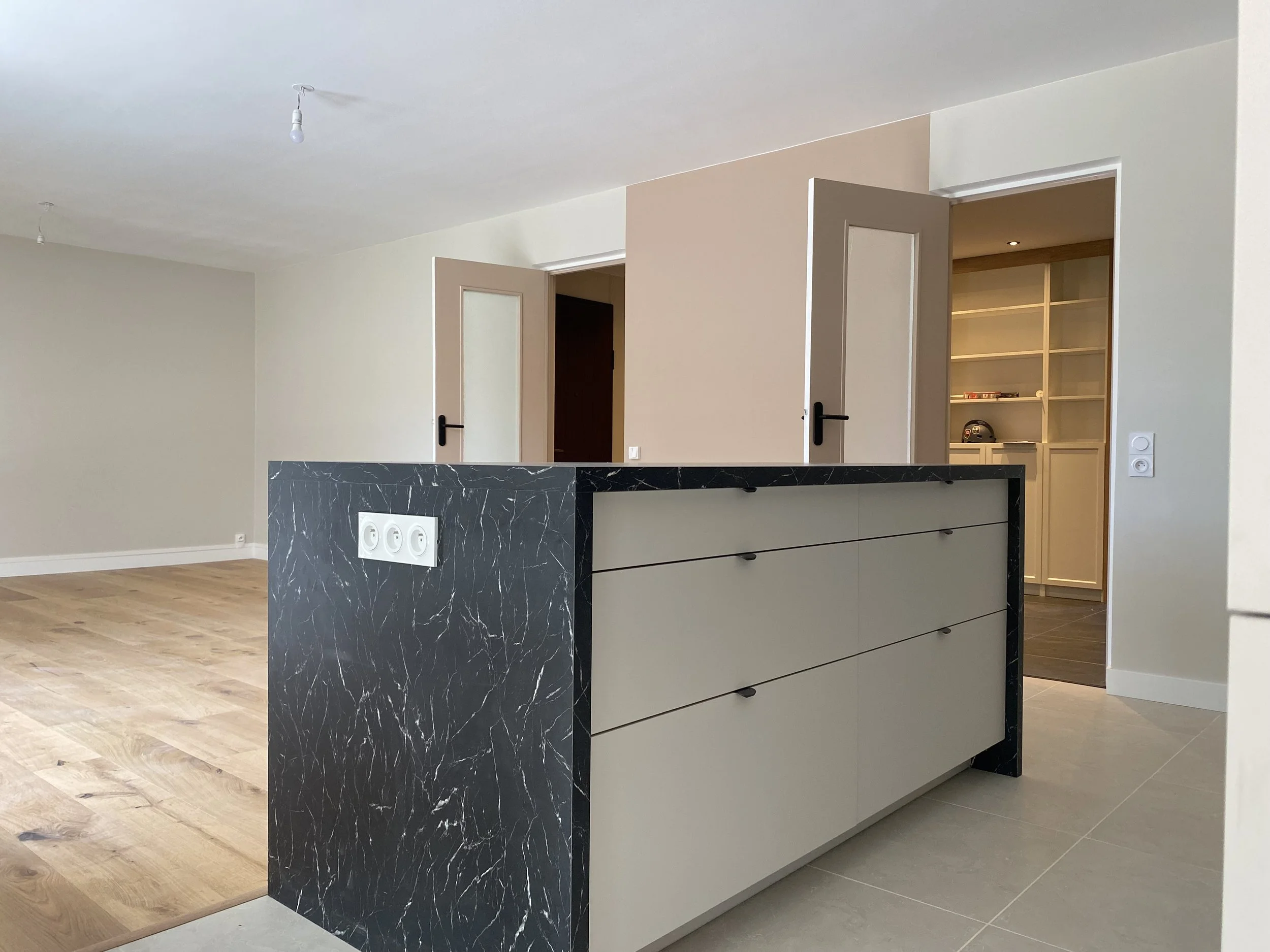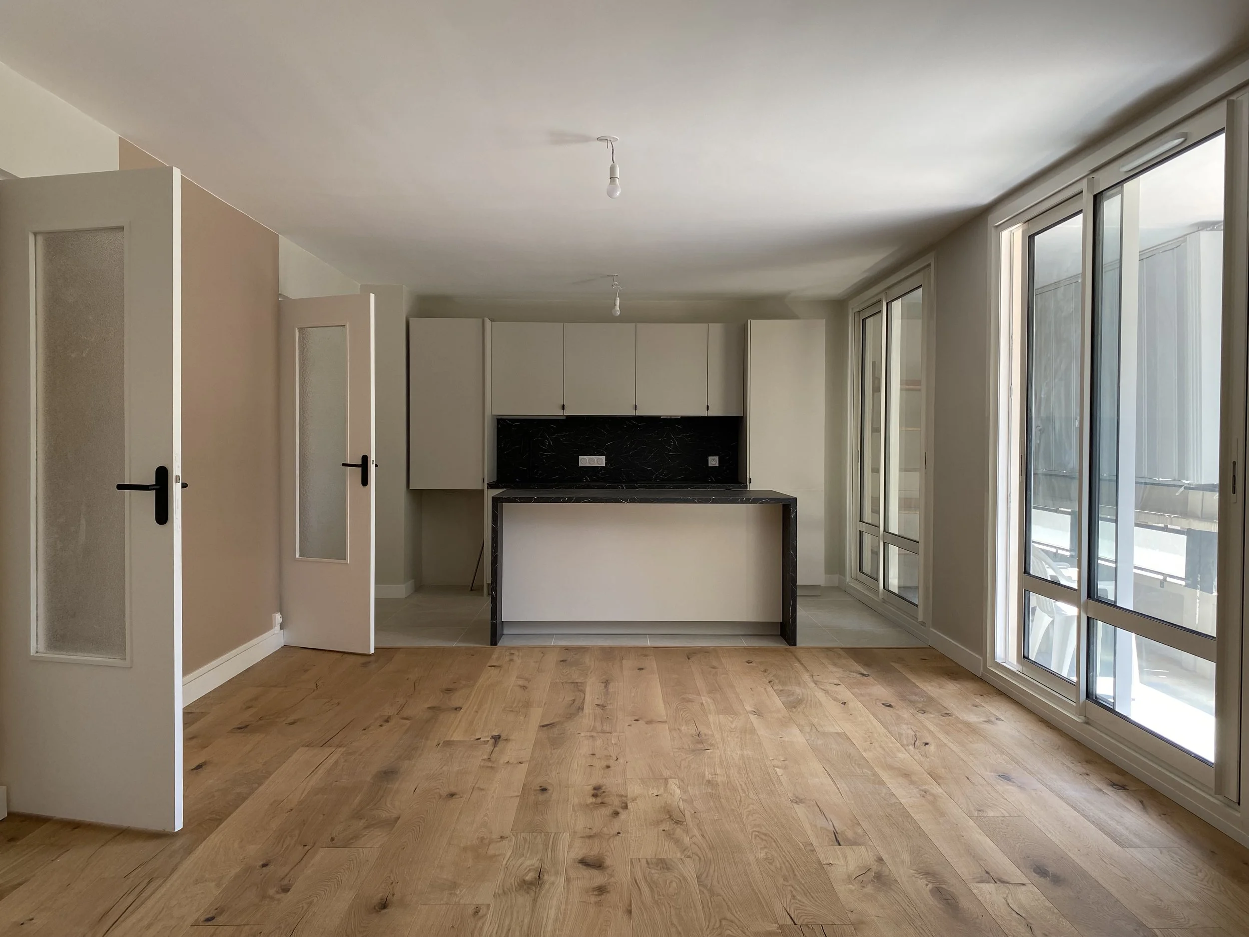 Les aménagements réalisés ont permis la création d’une vaste pièce de vie donnant sur un grand balcon.