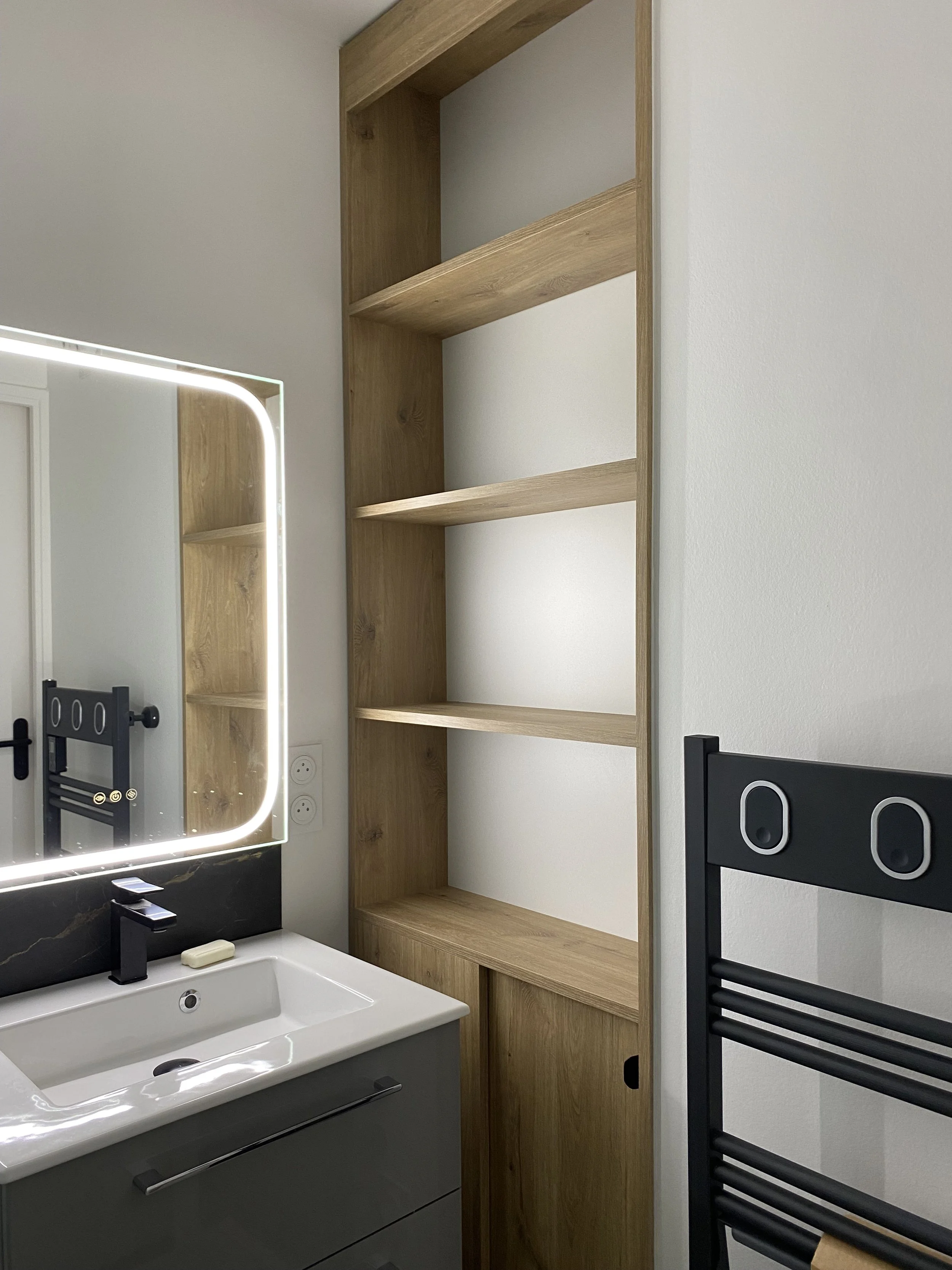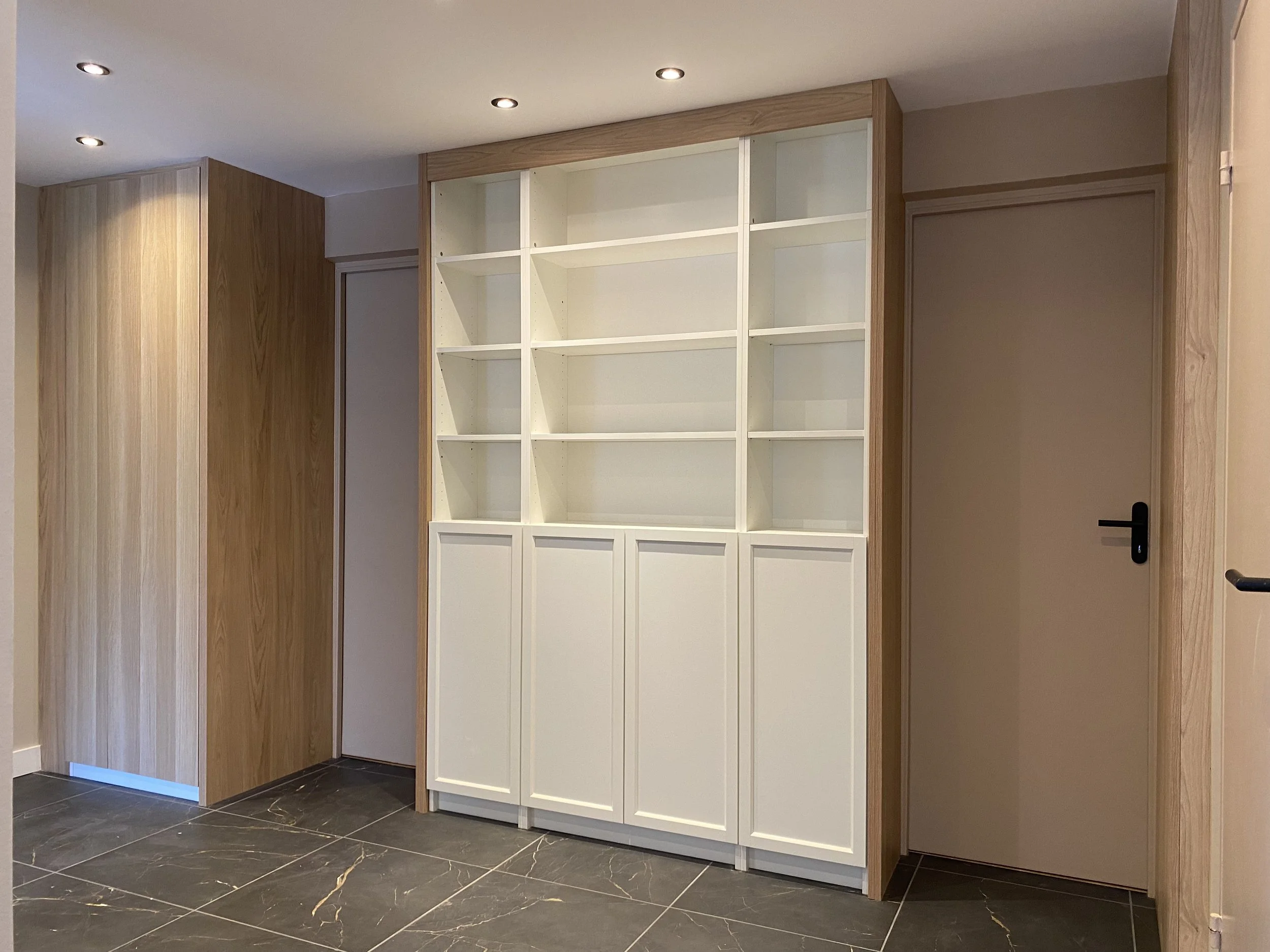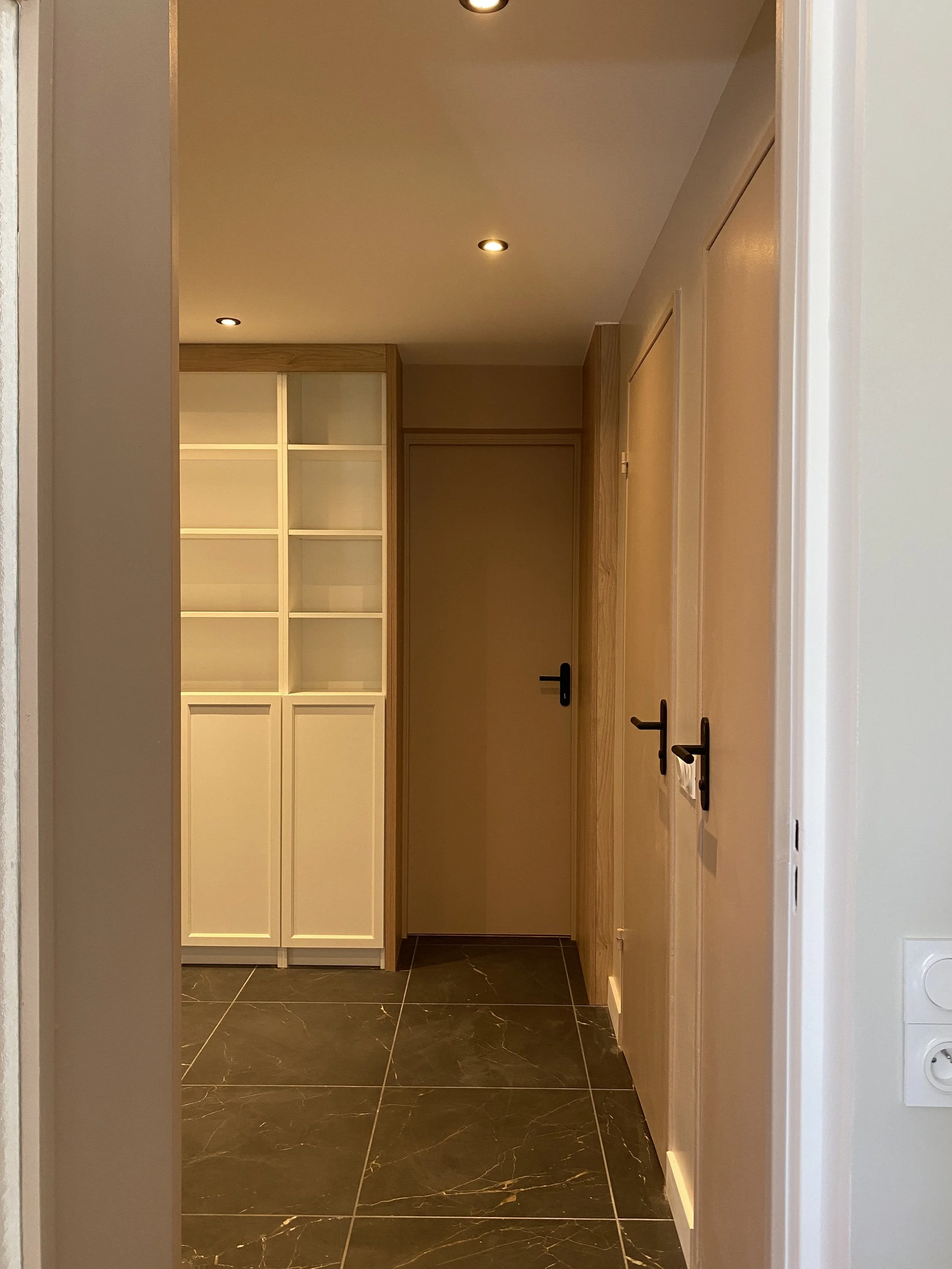 L’optimisation de cet espace d’entrée a consisté en la création de grands rangements sur mesure.